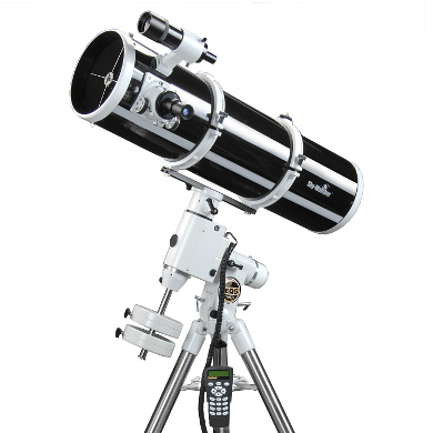 Newton mit 150mm Öffnung und 750mm (oder 1200mm) Brennweite auf einer parallaktischen Montierung Mit diesem Teleskop kann man im Sonnensystem auf Planetenjagd gehen. Die Planeten werden in unglaublicher Schärfe abbgebildet. Bspw. die Cassini-Teilung des Saturnrings ebenso wie der Saturnmond Titan werden für viele Sternenfreunde zum erstenmal deutlich sichtbar. Dieses lichtstarke Teleskop bietet mit der grossen Öffnung ebenso eine gute Basis um Galaxien, Sternhaufen und Planetarische Nebel mit eigenen Augen zu erkunden. Komplettgerät mit 6*30 Sucher, 2 Okulare und original NEQ-3-2 Montierung für ab 589 Euro